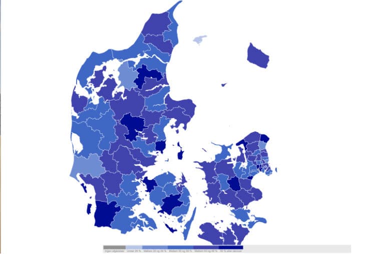 Det blå kort herover viser, hvad omgøringsprocenten var i de enkelte kommuner. En interaktiv version med tal og beskrivelser kan findes her.