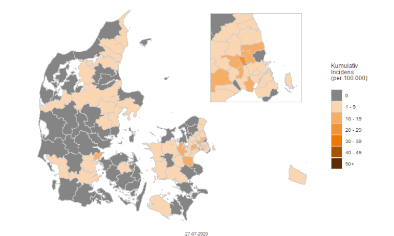Ti kommuner har mere end 10 smittede pr. 100.000.