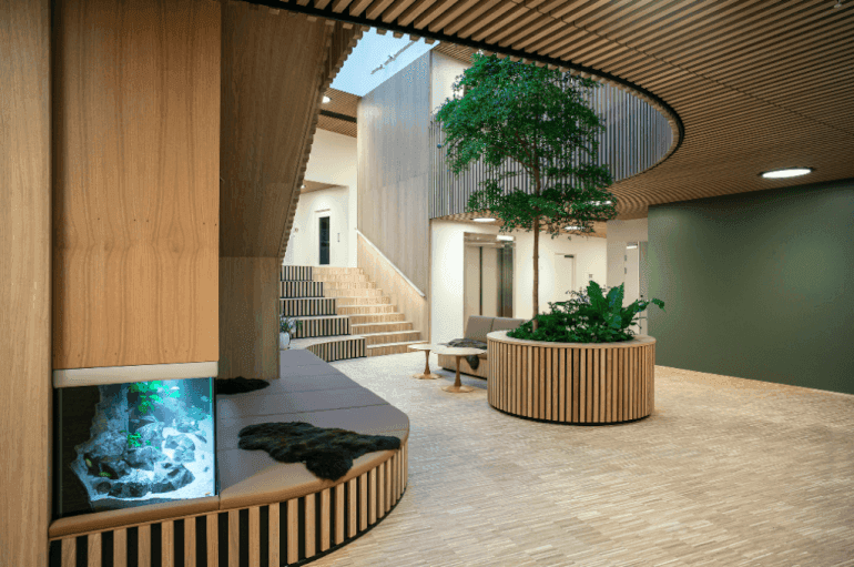 MIDTJYLLAND: Vinderen af Årets Sundhedsbyggeri 2021 er Strandbakkehuset i Rønde på Djursland. Det er landets første nybyggede børne- og ungehospice. Det er Nohrcon, der netop har offentliggjort vinderen, der blev fundet på baggrund af en offentlig afstemning og en fagjurys vurderinger. Juryen fremhævede blandt andet projektets store indlevelse i de særlige sårbare menneskers behov.
