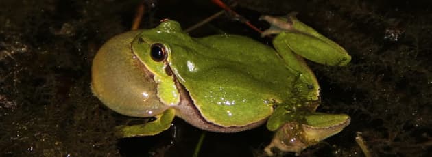 Løvfrøen har normalt en smuk irgrøn farve, og hannernes kvækken kan høres 1 km. væk.