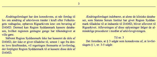 SYDDANMARK: Region Syddanmark er klar til 'med det vons' at iværksætte sletningen af de ulovligt indsamlede patientdata i Dansk AlmenMedicinsk Database (DAMD), så snart Lovtidende offentliggør den ændring i arkivloven, som Folketinget vedtog tirsdag. Lovændringen gled ukommenteret og enstemmigt gennem 3. behandlingen i folketingssalen og afslutter dermed et halvt års strid om de ulovligt indsamlede data.